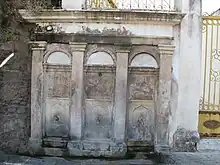 Une fontaine au nord-ouest de la mosquée a été ajoutée au cours de la deuxième période de construction en 1875, comme l'indique une plaque sur le monument[5]. Elle remplissait alors deux fonctions ; la première celle de permettre les ablutions rituelles avant la prière, la seconde celle d'abreuver les passants. Les trois points d'eau de la fontaine entourés d'arcs brisés sont séparées par quatre piliers de pierre, entre lesquels sont insérés des panneaux de marbre semi-circulaires portant des inscriptions[14].