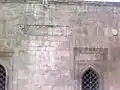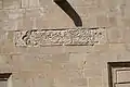 Le mur de la façade principale présente une inscription en arabe. Le texte organisé sur deux lignes indique la date de construction de la mosquée ainsi que les noms de son commanditaire et de son architecte. Celui-ci a joué un rôle actif dans la construction d'édifices et de structures militaires, religieux et commémoratifs. Dans ses œuvres, on remarque l'influence de la période Chirvanshah[3].