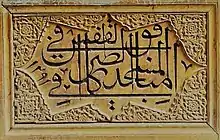 De nombreuses inscriptions en plâtre, en pierre et en bois sont apposées sur la mosquée. Dans le porche ouest une inscription indique le nom de Fath Ali Chah Qadjar (1772-1834) qui a reconstruit et consacré la mosquée. La porte nord est en bois et la date de 1291 y est gravée.