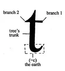 Selon Gébelin, toute écriture est « hiéroglyphique », c'est-à-dire « constituée de purs picto-idéogrammes ». Par conséquent « l'écriture alphabétique est hiéroglyphique […], chaque lettre étant la peinture d'un objet »[79] dans la langue originaire commune, ce qui ne signifie pas, précise Genette, que l'alphabet est une « peinture » directe des sons :