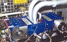 Le développement a été assuré à l'origine par Advanced Propulsion Technologies Inc.[28], qui détient par ailleurs le brevet. Il s'agit d'un projet financé par la DARPA, qui y voit des applications importantes pour les hélicoptères militaires, les blindés, les camions ou les génératrices de campagne. Trois variantes ont été mises à l'étude : une version de 10 kW et 6 kg, une de 30 kW et 18 kg (par accouplement de trois modules de 10 kW) et une de 242 kW et 204 kg.