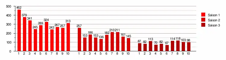 Source et légende : version française (VF) sur RS Doublage[1] et Doublage Séries Database[2].