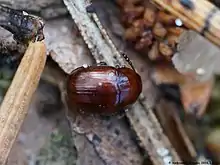 Trois ou quatre jours plus tard, naissent de petits vermisseaux qui se faufilent entre les grains de terre jusqu'au champignon qu'ils pénètrent jusqu'à la gleba et réduisent en bouilli grâce à leurs enzymes digestifs. Leurs deux crochets situés à l'avant ne leur servent pas à se nourrir mais à se déplacer à la manière d'un piolet. Il est courant de trouver de 20 à 30 larves par truffe. Trois semaines plus tard, les larves repues remontent à la surface du sol pour se puposer, ne laissant que des lambeaux du champignon. Dix à quinze jours plus tard, les imagos émergent[19],[3].