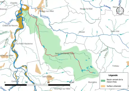 | Sources : SANDRE:« Fiche cours d'eau (K3407000) », Géoportail | |