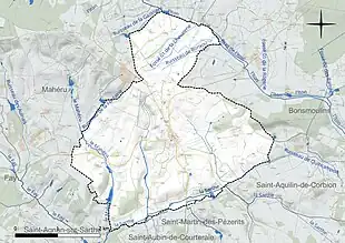 Les communes limitrophes sont La Ferrière-au-Doyen, Mahéru, Saint-Aquilin-de-Corbion, Saint-Aubin-de-Courteraie et Saint-Martin-des-Pézerits.