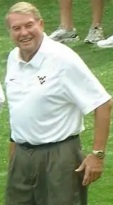 - Joe Stydahar (en), un offensive tackle, intronisé en 1967 : Malgré la carrière universitaire impressionnante de Stydahar, George Halas, propriétaire et entraineur des Bears de Chicago, tente sa chance en sélectionnant ce joueur peu connu, lors du premier choix possible des Bears au cours de la draft 1936 de la NFL[50]. Le pari de Halas porte ses fruits puisque "Jumbo Joe" aura une brillante carrière de joueur avec les Bears, remportant quatre sélections NFL All-Star, six sélections All-Pro, trois championnats NFL et une intronisation dans l'équipe de la décennie 1930 de la NFL. Stydahar a également été entraîneur principal des Rams de Los Angeles et des Cardinals de Chicago, remportant le championnat NFL 1951 avec les Rams. Lors de son discours d'intronisation au Temple de la renommée, Stydahar a remercié sa famille et ses amis de son « cher État, la Virginie-Occidentale »[51].