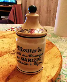 Au XVIIe siècle, la corporation de moutardier se constitue grâce à l'édiction de statuts à Dijon puis Beaune (qui comptera jusqu'à 33 maîtres moutardiers au début du XXe siècle[2]), qui réglementent l'usage des produits viticoles dans la confection du condiment[3]. La production bénéficie de la Révolution industrielle, qui permet la mise en place d'outils de production plus modernes (notamment la machine de Grey, fabricant de Dijon et fournisseur officiel de Napoléon III)[3]. Le nombre de fabricants diminue pour se concentrer dans les principales villes ; la production se déploie grâce aux pots en grès, les « moutardiers ».