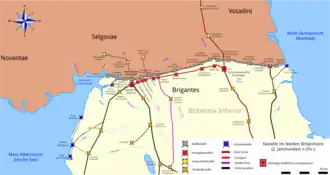 La conquête de la Bretagne commence en 43 à l’initiative de l’empereur Claude et s’étend pendant plusieurs décennies, jusqu’en 83 et la victoire de Julius Agricola à la bataille du Mont Graupius. Dans les années qui suivent, les Romains cherchent à sécuriser les Highlands avec un réseau de forts s’étendant au nord jusqu’à Inchtuthil[14]. Toutefois, peut-être en raison de l’invasion des Daces qui siphonne les troupes disponibles, ces efforts sont presque immédiatement interrompus et les territoires situés au nord d’une ligne courant du fort de Trimontium, près de Newstead, à Dalswinton sont abandonnés peu après 86[15].