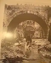 Lavandières dans le cours du torrent au XIXe siècle, vue de la Portaccia dans le fond.