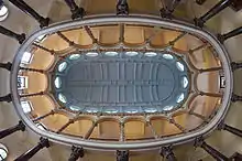 Le plan du bâtiment, d'architecture fastueuse, se compose de deux ailes symétriques, séparées d’un grand hall entouré d’une colonnade sur deux étages et couronné d’une coupole de forme elliptique.