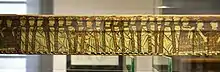- Poutre de Cruïlles, XII-XIIIe siècle. Poutre romane provenant du monastère bénédictin de Sant Miquel de Cruïlles (Bas-Ampourdan). Elle a été découverte lors de la restauration du retable de Sant Miquel de Cruïlles, exposé dans la salle numéro 8 du musée. Elle avait été réutilisée en tant que poutre traverse pour unir la prédelle aux tables. À l'origine, cette poutre faisait néanmoins partie du dais de l’autel principal de l’église du monastère. Sa face centrale est ornée d'une procession de prêtres, présidée par l’évêque, qui sont représentés de profil et la bouche entrouverte car ils chantaient.