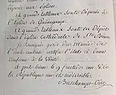 Le premier numéro de cette liste de neuf articles fait référence à « un tableau, cadre doré, représentant l'état de Tancrède après son combat avec Argont[8] ». Il s'agit vraisemblablement du tableau de l'école italienne du XVIIe siècle, que le futur conservateur du musée de Saint-Brieuc Léon Brandt répertorie en 1906 sous le no 69, Vafrin et Herminie découvrant Tancrède blessé, comme provenant de la galerie de Monseigneur de Bellescize, évêque de Saint-Brieuc[9] .