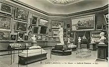 Les nombreuses cartes postales éditées au début du XXe siècle, notamment par Armand Waron, donnent une vision complète des parties du musée accessibles au public. L'entrée se fait par la cour intérieure couverte de l'hôtel de ville se poursuivant par l'escalier d'honneur avec une présentation de sculptures monumentales [28]. L'étage comprend une très grande salle consacrée aux peintures et aux sculptures[29] et, après avoir monté trois marches, une seconde salle consacrée aux dessins et gravures encadrées et aux médailles.
