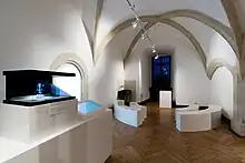 Plus récemment, en 1978, l'université Eberhard Karl fait l'acquisition de figurines mises en évidence au sein de la grotte de Vogelherd — site préhistorique inscrit sur la liste du patrimoine mondial —, par Gustav Riek, en 1931[29]. Les statuettes sont ultérieurement conservées dans la librairie de l'institution universitaire, puis sont transférées au château Hohentübingen en 1998[29]. Actuellement, les figurines retrouvées par Riek ainsi qu'une partie des découvertes réalisées depuis la campagne de fouilles de la Vogelherd en 2006 — notamment les pièces représentant un cheval sauvage, un mammouth, ou encore un lion des cavernes — sont en grande partie exposées au château de Tübingen[30],[31],[32]. Ces pièces constituent la partie principale de la collection de préhistoire ancienne du musée universitaire de Tübingen[32],[31],[33].