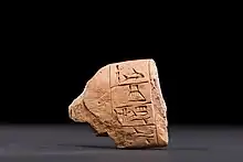 La collection levantine comprend un fragment de dédicace faite par un architecte pour un souverain et gravée sur une brique faite en adobe[119] ; une inscription de 3,6 × 3,6 × 1,7 cm et d'un poids d'environ 500 g gravée sous la dynastie de Puzur-Mama (en) (époque sumérienne et datée d'environ 2 300 av. J.-C.)[120],[Note 3] ; une inscription de 1,6 × 5,8 × 5,3 cm datée d'environ 3 000 av. J.-C. (époque d'Uruk III) et mise en évidence sur le site de Warka[124].