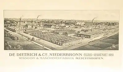 Les usines De Dietrich étaient surtout concentrées dans les Vosges du Nord, à Reichshoffen, Niederbronn, Zinswiller, Mouterhouse et Mertzwiller.