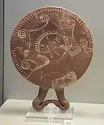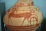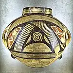 Vase néolithique en terre cuite, à décoration trichrome. |