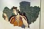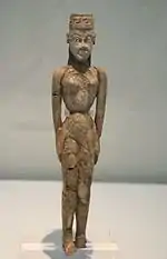 Statuette de terre cuite d'un homme assis, apparemment un dieu de la fertilité. |