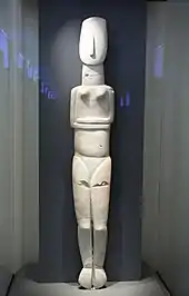 La salle 6 offre une importante collection d'art cycladique, avec ses célèbres idoles. Elle est organisée de façon chronologique, mais aussi en fonction des provenances. Les découvertes de Phylakopi sur Milos par la British School at Athens font l'objet d'une présentation particulière. L'« Idole d'Amorgós » est l'une des plus grandes jamais retrouvées : elle mesure 1,50 m (XXVIIIe – XXVIe siècle av. J.-C.). Cette salle contient aussi les musiciens (joueur de harpe et flûte) provenant de Kéros, des « poêles à frire », des vases de marbre (kandiles) et de la céramique cycladique, ainsi que les fragments des fresques de Phylakopi[26],[27],[28].
