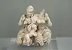 Statuette de terre cuite d'une femme assise, tenant son enfant dans les bras. |