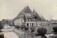 A droite de l'entrée du musée (à gauche sur la photo), une Sala (aujourd'hui disparu) et la chapelle Bouddaisawan en arrière-plan (2008)