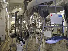 La première salle présente plus de dix mille insectes, des pinnipèdes et des cétacés, dont un squelette parmi les plus grands du monde d'une baleine bleue d'une longueur de vingt-sept mètres, échouée en 1827 sur la plage d'Ostende et donnée en 1856 au musée[4]. On trouve également à l'entrée de cette salle, près de l'escalier d'honneur, les premiers spécimens achetés par Pierre le Grand pour sa Kunstkamera[5]. On remarque parmi les animaux empaillés, la jument favorite de Pierre le Grand, Lisette, et son chien, Tyran.