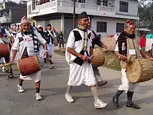 Certaines castes (damai), chez les Khas usent volontiers de la musique en accompagnement de cérémonies. Les bardes itinérants gaine jouent du sarangi.