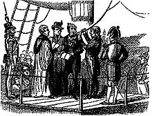 C'est dans ces conditions qu'en mars 1797 éclate la mutinerie de Spithead. Les hommes des navires de l'escadre de la Manche[1], au mouillage dans le Spithead, un bras de mer abrité du vent entre l'île de Wight et Portsmouth, envoient onze pétitions à leur ancien amiral, Richard Howe, désormais à la retraite, et demandent à être reçus et entendus. Le , les marins qui prévoyaient la mutinerie depuis plusieurs semaines, refusent d'obéir à l'ordre de prendre la mer. Toutefois, ils maintiennent la discipline à bord des vaisseaux, et créent une structure de commandement composée d'une assemblée générale souveraine, avec des délégués élus. C'est à partir de ce moment qu'on a pu parler de la « république flottante » de Spithead.