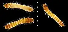Les larves de Mycetophagidae sont allongées et presque cylindriques, colorées de jaune brun, lisses et généralement couvertes de poils simples. La tête et les différents sclérites sont bien sclérotisés, les mandibules sont robustes et asymétriques, les pattes sont relativement longues et possèdent généralement des soies en forme d'épines sur toute leur longueur. Le neuvième segment abdominal possède presque toujours une paire d'urogomphes en forme d'épine recourbé vers l'arrière. Les spiracles sont annulaires et situés dans la membrane plutôt que sur les sclérites[3],[2].