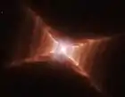 Ce stade intermédiaire survient lorsqu'une étoile a consommé la totalité de son hydrogène et s'attaque alors à l'hélium. Cela provoque la libération d'un nuage de gaz excité par le rayonnement de l'étoile[6]. Une protonébuleuse planétaire est une sorte de nébuleuse par réflexion dont l'étoile est généralement entourée d'un épais disque de poussière[7],[8],[9].