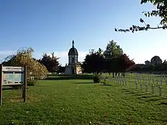 Une chapelle commémorative a été édifiée au centre du cimetière, elle est coiffée d'un dôme. Au-dessus de la porte l'inscription Morts pour la France 1914-1918, puis sur chaque face Verdun, Argonne; Yser, Aisne, Champagne, Marne, Somme.