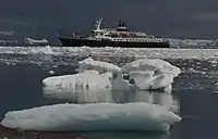 Le MV Lyubov Orlova traversant Néko Harbor, Antarctique