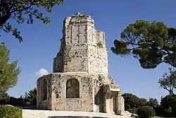 ![]() ![]() ![]() ![]() ![]() ![]() ![]() ![]() De haut en bas et de gauche à droite: les arènes de Nîmes ; la maison Carrée ; l'hôtel Bézard ; la Cathédrale Notre-Dame-et-Saint-Castor de Nîmes ; la tour Magne ; l'église Saint-Paul ; les arènes et la grande roue ; le palais de justice. |