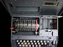 - La clé externe est un mot de passe de dix lettres qui correspond à la position initiale des dix rotors. Il y a donc clés externes possibles. Cela correspond environ à un mot de passe de 47 bits.