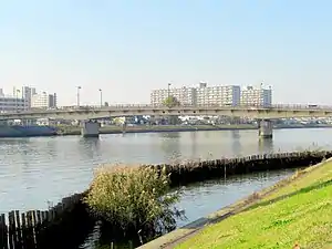 L’Ayase-gawa, une des rivières les plus polluées du Japon[1], rejoint la Naka-gawa à Tokyo.