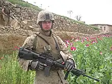 L'opium est ainsi lié à la guerre d'Afghanistan. En 2008, Rahim Wardak, le ministre afghan de la Défense, a demandé à l'OTAN de l'assister, sur demande au cas par cas des autorités afghanes, dans les opérations contre les trafiquants de drogue, qui prennent ainsi une tournure militaro-policière[15]. Plusieurs Afghans ont été jugés et condamnés aux États-Unis, dont Bashir Noorzai (en) et Baz Mohammed, les deux en 2005[16]. La Drug Enforcement Administration participe ainsi aux opérations sur le terrain, avec au , 96 agents dans le pays qui ont rejoint leurs homologues afghans et les forces de l'OTAN dans plus de 80 opérations combinées l'an dernier et déclarant que les saisies d'opium en Afghanistan ont grimpé de 924 % entre 2008 et 2009[17], telles une en où plus de 50 tonnes d'opium et 1,8 tonne d'héroïne ont été détruites et 17 talibans tués[18].