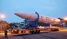Le troisième et dernier lanceur Naro-1 sur sa remorque le 26 octobre 2012.