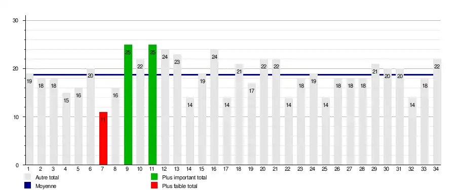 | Créteil | 17 | 17 | 13 | 13 | 11 | 12 | 13 | 15 | 11 | 11 | 13 | 14 | 11 | 11 | 11 | 11 | 13 | 13 | 14 | 15 | 16 | 17 | 17 | 17 | 17 | 17 | 17 | 17 | 17 | 17 | 17 | 17 | 17 | 17 | 18 | |