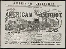 Le nationalisme américain (American nationalism) est une forme de nationalisme ethnique, culturel ou civique[1] aux États-Unis[2]. Il indique essentiellement les aspects qui caractérisent et distinguent les États-Unis en tant que communauté politique autonome. Le terme sert souvent à expliquer les efforts déployés pour renforcer son identité nationale et son autodétermination dans le cadre de leurs affaires nationales et internationales. Les trois formes de nationalisme ont trouvé une expression dans l'histoire des États-Unis, en fonction de la période historique. Des universitaires américains tels que Hans Kohn ont déclaré que le gouvernement des États-Unis avait institutionnalisé un nationalisme civique fondé sur des concepts juridiques et rationnels de citoyenneté, reposant sur une langue et des traditions culturelles communes. Les pères fondateurs des États-Unis ont établi la souveraineté du pays sur des principes libéraux et individualistes classiques mais ils l'ont également combiné avec du nationalisme ethnique, tel que codifié dans la Loi sur la Naturalisation de 1790, dont la logique s'est poursuivie avec la Loi d'exclusion des Chinois, les Lois sur l'Immigration de 1891 et 1917, la Loi sur l'Urgence des Quotas de 1921, la Loi d'immigration Johnson-Reed de 1924 ou encore la Loi sur l'Immigration et la Nationalité de 1952.