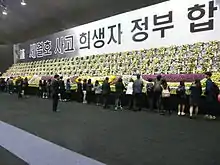 Le naufrage du Sewol[2] s'est déroulé le , sur le trajet entre Incheon et Jeju en Corée du Sud. Le ferry a chaviré alors qu'il transportait 476 personnes, pour la plupart des lycéens du lycée Danwon, dans la ville d'Ansan[3]. En tout, 304 passagers et membres d'équipage ont péri dans la catastrophe[4],[5]. Des 172 survivants, plus de la moitié ont été secourus par des bateaux de pêche et par d'autres navires commerciaux arrivés sur la scène quelque 40 minutes après la garde côtière sud-coréenne[6].