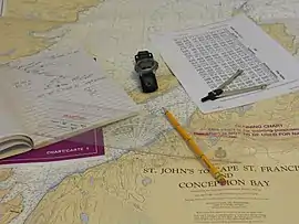 - hors de vue de terre, la navigation consiste à se placer en coordonnées géographiques (latitude et longitude). La méthode utilisée est alors la navigation à l'estime ; le point ainsi « estimé » est « recalé » plus ou moins fréquemment grâce à des points astronomique et, naguère, avec l'utilisation éventuelle de systèmes radioélectriques terrestres (CONSOL, LORAN, Oméga, Decca, etc. aujourd'hui pour la plupart éteints) ;