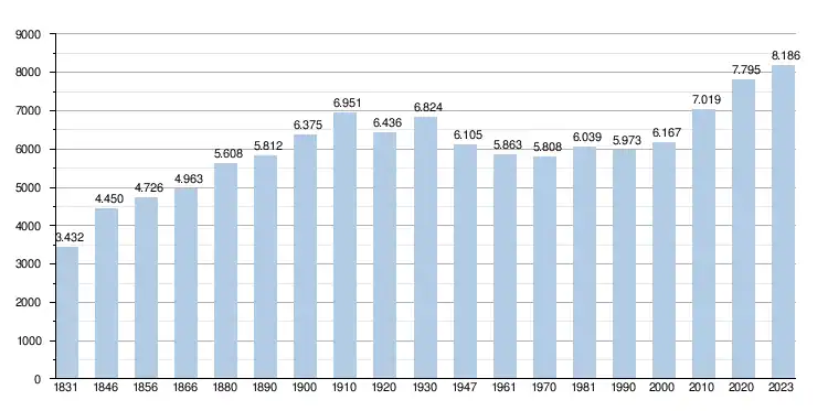 - Source: DGS , de 1831 à 1981=recensements population; à partir de 1990 = nombre d'habitants chaque 1 janvier