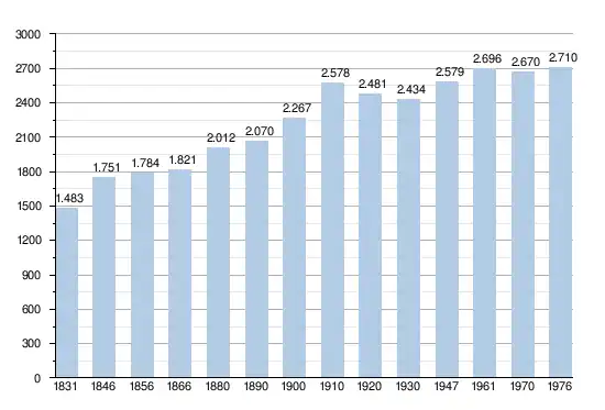 Les chiffres des années 1831 à 1970 tiennent compte des chiffres des anciennes communes fusionnées.