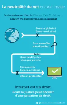 Le 12 septembre 2012, la députée Laure de La Raudière a fait une proposition de loi concernant notamment la neutralité du net[23]. Ce projet de loi fait suite à une mission parlementaire « information sur la neutralité de l’internet et des réseaux » publiée en 2011[24].