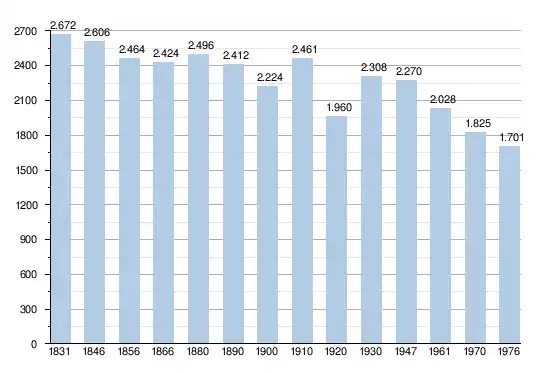 - Sources : INS, Rem. : 1831 jusqu'en 1970 = recensements, 1976 = nombre d'habitants au 31 décembre[3].