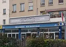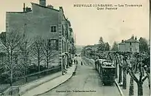 ![]() Le Train bleu du Val de Saône à son terminus de Neuville, dans les années 1930. La ligne a fonctionné jusqu'en 1957, date à laquelle le tramway fut remplacé par l'actuelle ligne 40 des bus lyonnais. |