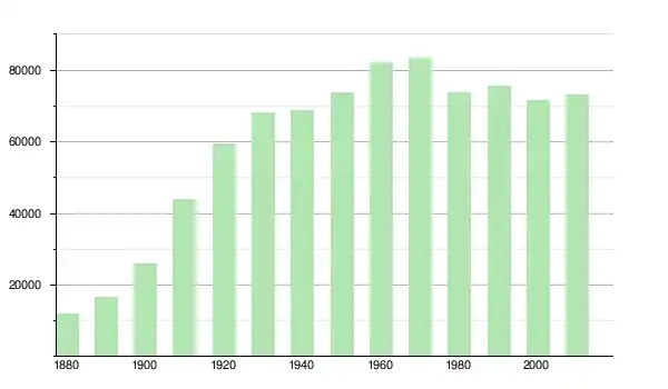D'après le recensement de 2000, il y avait 71 538 habitants, 28 558 ménages, et 16 934 familles dans la ville. La densité de population était de 2 070,5 hab/km2. Il y avait 31 164 maisons avec une densité de 902,0 maisons/km2. La composition ethnique de la population était de : 69,38 % blancs ; 10,89 % noirs ; 0,37 % amérindiens ; 2,36 % asiatiques ; 0,06 % natifs des îles du Pacifique ; 13,12 % des autres races ; 3,81 % de deux ou plus races. 26,75 % de la population était hispanique ou Latino de n'importe quelle race.