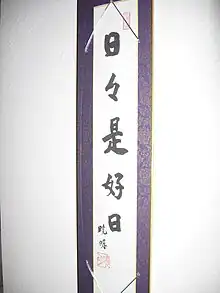 Il existe plusieurs graphies possibles de cette phrase: 日々是好日 / 雲門日日是好日 / 雲門日々是好日 / 雲門好日 et 雲門十五日[6],[7],[4].