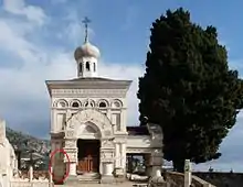 En , il établit le dessin[7] de la chapelle orthodoxe du cimetière du Vieux-Château à Menton.