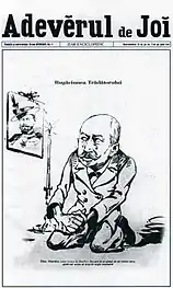En 1898-1899, Nicolae Petrescu-Găină a exécuté une série de caricatures à caractère politique pour le journal Adevărul de Joi, comme « Faits et discours »[42] ou « La prière du traître »[43].